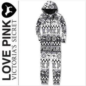 new victoria's secret pink sherpa onesie pj one piece xs m
