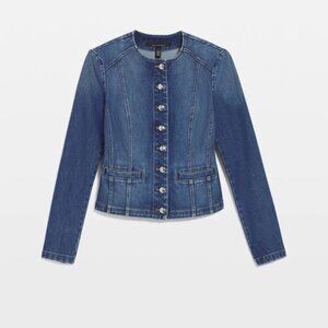 new white house black market cropped stretch denim jacket blazer 8