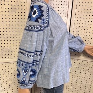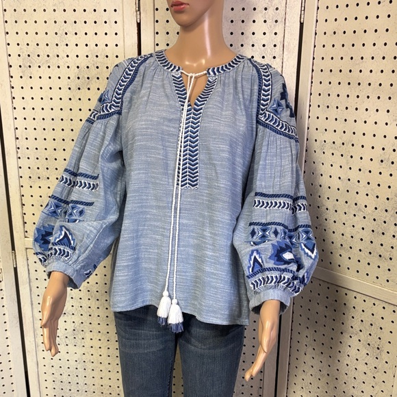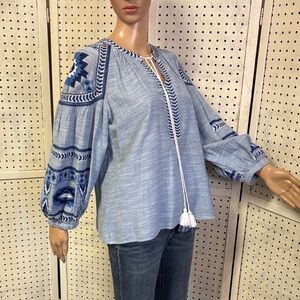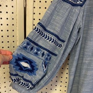 Banji blue cotton v-neck tunic with beautiful southwest blue embroidery and tassel tieππππ chest 20 length 24