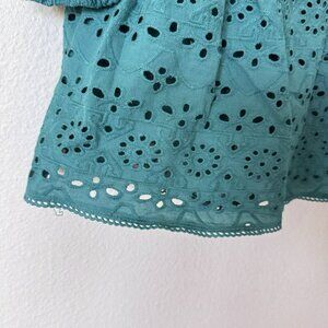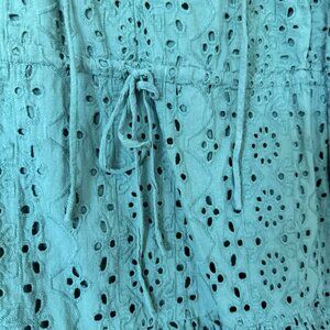 next Dress UK 12 US 8 Green Eyelet Blue Long Sleeves V Neck Toe Waist