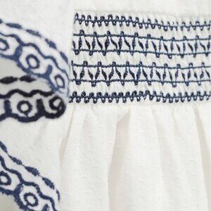 next Girls Cream Solid A-Line Dress with Embroidered & Smock Detail