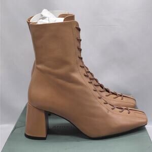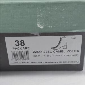 $135 New In Box Ángel Alarcón Pacuare Volga Camel Leather Lace Up Combat Ankle Boots Chunky Block Heel Women's Size 38(7.5)