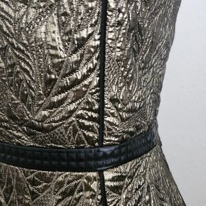 Seaming accents this brilliant gold nha khanh dress. Faux leather accent at waist. Dress runs small. Please note waist measurement.