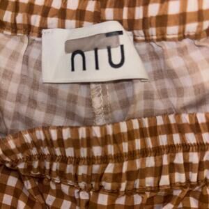 niū Checkered Pants – Size Small – Brown & White Gingham | Made in Italy