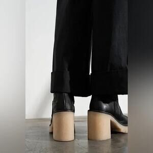 nib FREE PEOPLE sz 37.5/ 7.5 James Black Leather Chelsea Boot w chunky heel