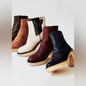 nib FREE PEOPLE sz 39.5/ 9.5 James Black Leather Chelsea Boot w chunky heel