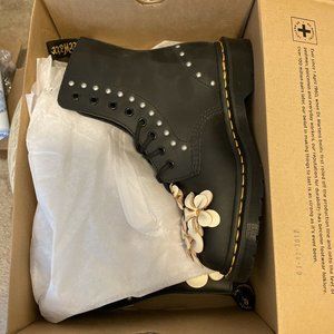 nib Dr. Martens pascal flower black boots 23315001 hyrdo leather US womens 8
