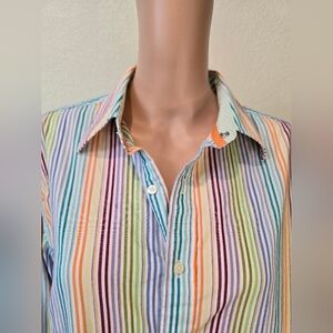 nick(it) New York London Long Sleeve Flip Cuff Button-Front Shirt Size Large