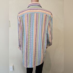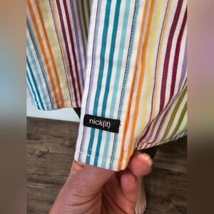 This NICK(IT) button-up shirt is the perfect addition to any wardrobe. With its stylish striped pattern and long sleeves, it's ideal for any occasion. Made from 100% cotton, it's comfortable and durable. The shirt features a button-front design, with a flip cuff for added style. It's available in size large , and is suitable for men of all ages.