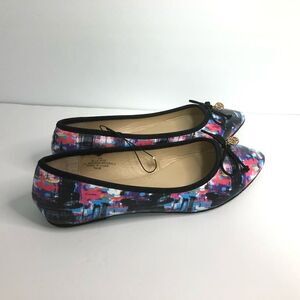 nicole miller 6M blue rise flat point toe slip on wearable art ballet flats bow logo charm