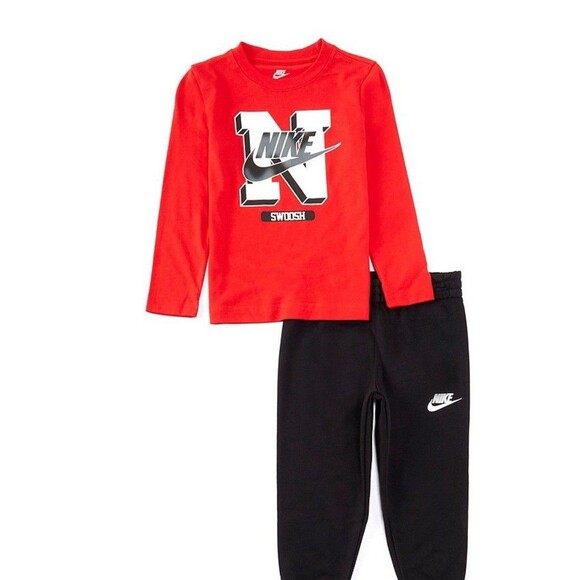 This Nike 2-piece set is perfect for your little boy aged 12 to 24 months. The set includes a long sleeve top with a boy character design, ideal for casual occasions during the summer and spring seasons. Made from a blended fabric, this outfit set features the iconic Nike logo accents, adding a touch of style to your child's wardrobe. Easy to care for with machine washable instructions, this new with tags set is a must-have for any young Nike fan.