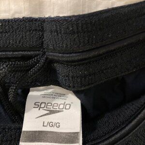 speedo no mesh inning and has front pockets and one zip back pocket - little color fading from sun