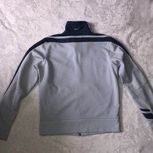 light and dark blue nike jacket. has a few small stains/marks and a small snag as pictured, but otherwise great condition. the “stains”/marks will probably come out in the wash. size medium, but runs small and fits more like a small