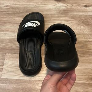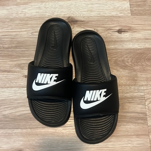 Black nike slides in perfect condition, never been worn! Size 8 but could also fit a 7.5.