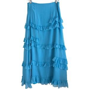 nina austin Y2K silk chiffon coquette ruffle blue fairy whimsy maxi slip medium