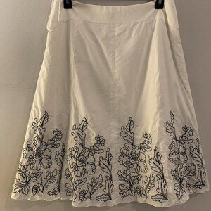 nine west women skirts white a-line below knee black embroidery. In good condition with minor wear. Please see the photos.