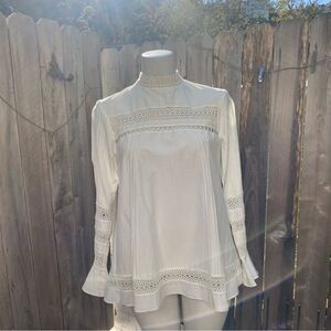 n/nicholas Lace-Trim Long-Sleeve Pintuck Blouse size 4