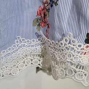 no Boundaries Off Shoulder Blue & White Striped and Floral Blouse