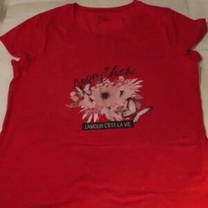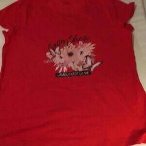 No boundaries ladies blouse color red with graphic print bust 38 length 26 New without tag