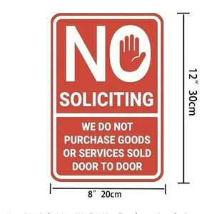 "no soliciting we do not purchase door to door goods or services" tin metal sign