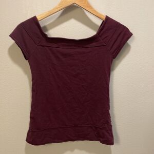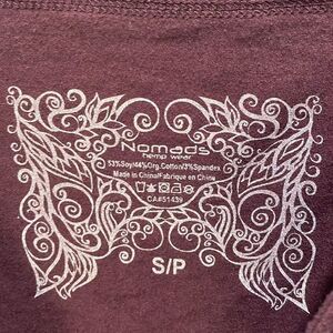 Nomads woman’s maroon shirt sleeve ruffle top. This top is a size Small. This top is super cute and in good condition.