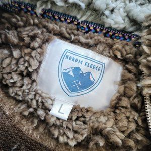 nordic fleece super soft quarter zip pullover brown faux fur sweater size large