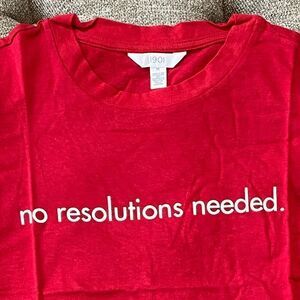 “no resolutions needed” Graphic Tee. High quality crew neck tee with fun graphic. Pics with measuring tape are size M. Made in USA.