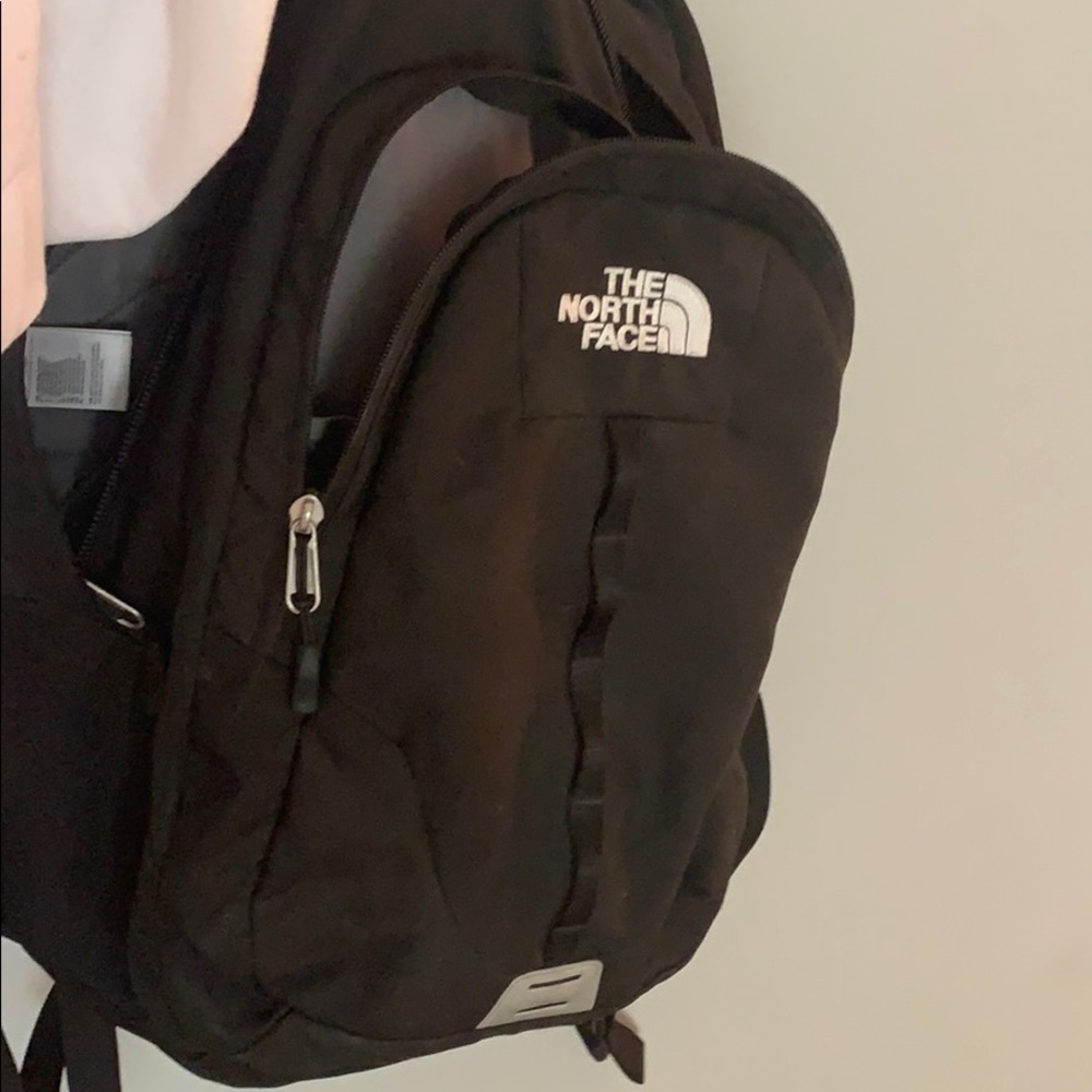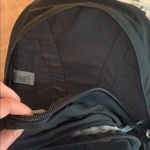 black backpack with multiple pockets! zippers and condition are perfect! love this backpack and it’s great for students or travel.