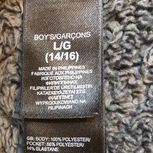 black north face jacket fluffy on the inside. warm and soft. worn once or twice. size boys large.