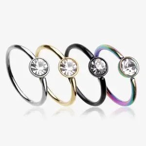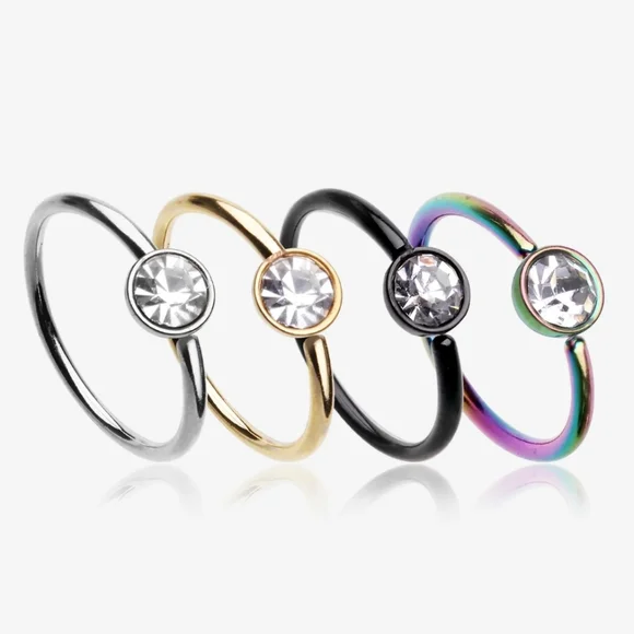 4 Pcs of Assorted Color Plated Press-Fit Gem Bendable Hoop nose rings