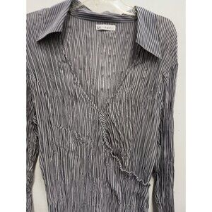 Y2K Kaelyn Max II Top Womens Size 2X BOHO Fairy Gray Striped Crinkle Bell Sleeve