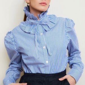 This is the bestseller January Top in a linen/wool blend. Color is an indigo blue shade, size is S/M. Purchased directly from Not Perfect Linen. Worn once. Excellent like new condition, no flaws.