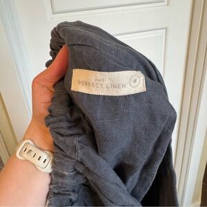 notPerfectLinen 1950’s City navy skirt in play condition. Second owner, first owner got paint on the back/side of skirt as pictured.