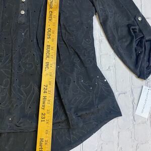 notations womens blouse L rollcuff Ruffle Floral Sparkle NYC camp bold Statement This piece has a beautiful sparkle under lights