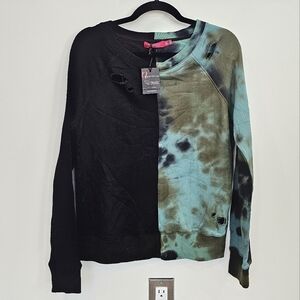 n:philanthropy Belize Distressed Green Black Colorblock Tie Dye Sweatshirt XS