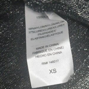 Make a bold statement with this sleek n:philosophy Delia Metallic Cut Out Top! Featuring a striking black base with shimmering silver metallic accents, this top is designed with a trendy cut-out detail at the neckline for a fashion-forward look. Crafted from a comfortable and stretchy blend of nylon, lurex, and elastane, it’s perfect for nights out or special occasions. Brand new with tags, this top is perfect for adding some edge to your wardrobe.