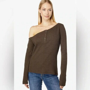 n:philanthropy Eero One Shoulder Top Chocolate Brown Waffle Knit Size Large NWT.