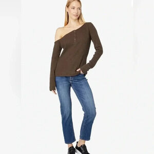n:philanthropy Eero One Shoulder Top Chocolate Brown Waffle Knit Size Large NWT.