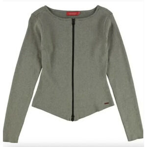 n:philanthropy Sweater Womens Small Green Zip Front Knit Fitted Long Sleeve
