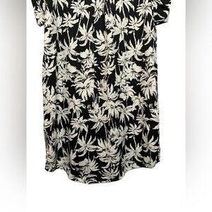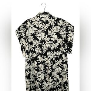 (nude) Italy Button Front Short Sleeve Tropical Black Cream Shirt Dress 44/US 8