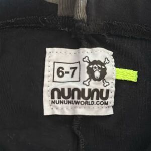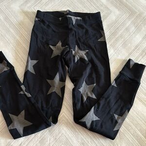 nununu Girls Black With Grey Stars Leggings. Elastic waistband. Made of cotton. Gently worn. 21.5” inseam. Size 6-7.