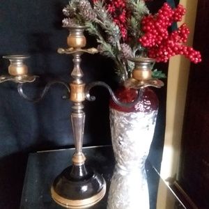 The candle stick shown here has black arms and the base, with gold detail and the silver plate to give an elegant and unique flavor to a table setting....
