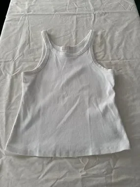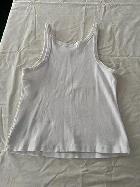 Soft ribbed fabric. Scoop neckline. Sleeveless design. Comfortable and breathable. Easy to style with any outfit. Worn and washed once at most.