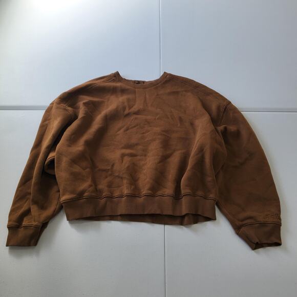 nuuds Sweatshirt Womens Large Brown Crewneck Fleece Pullover Ribbed Hem Casual