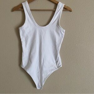 Chic white bodysuit by nuuds. Sleeveless design. Perfect for layering or wearing alone. Great for layering or fully nuud approved! A similar neckline as our Scoop Neck Bodysuit but add a scoop in the back, giving the ultimate feminine feel. This tank is an A+ for all shapes and sizes, keeping you feeling snatched in all the right places.