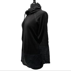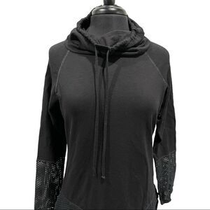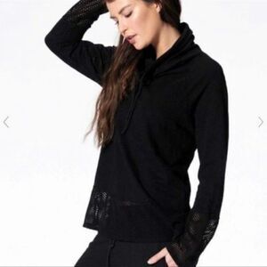 nux Ricky Black Cowl Neck Perforated Long Sleeve Pullover Sz L