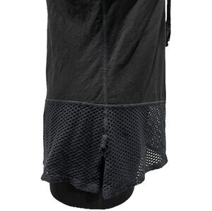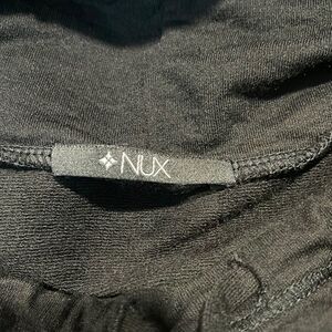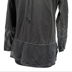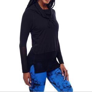 Nux black Ricky long sleeve pullover. French terry with mesh detail at sleeves and hem. Funnel neckline with tie on a lightweight breathable body. Loose fit.