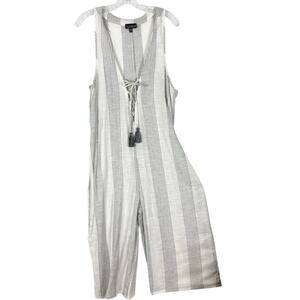nwot TOPSHOP Jumpsuit US 14 Stripe White Black Wide-Leg Tassels V-Neck Cotton
