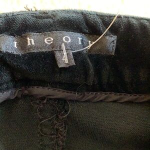 Theory Ruched Velvet Pants Size: 4 Color: Black 77% Cotton 21% Modal 2% Elastic Approx. Measurements: Waist: 30 in. Inseam: 31 in. Length: 40.5 in.