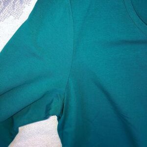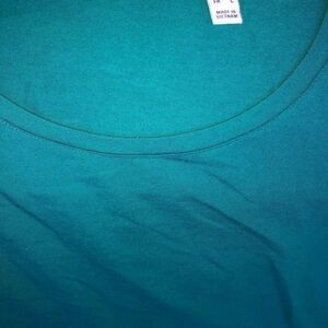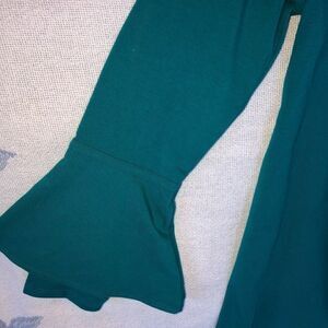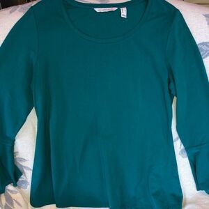 New Without Tags Womens Medium Isaac Mizrahi Live! Teal Long Sleeve Top with Fun Wide Ruffled Sleeve Cuffs. Imported. 58% Cotton/37% Modal/5% Spandex. Smoke Free Home.